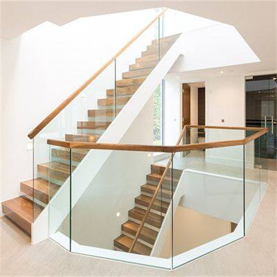Индивидуальная внутренняя деревянная ступеньная лестница с стеклянной перилами балюстрады