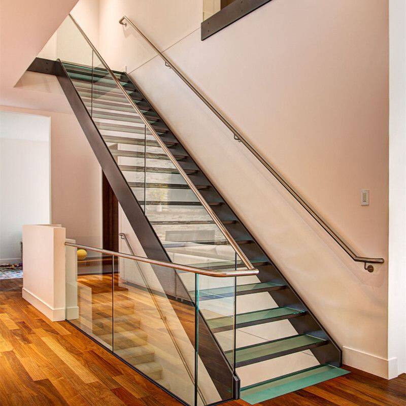 Индивидуальная стеклянная лестница с прямым стропилем современного стиля для внутреннего помещения