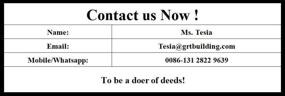 Свяжитесь с нами СЕЙЧАС для получения подробной информации! (tesia@grtbuilding.com).