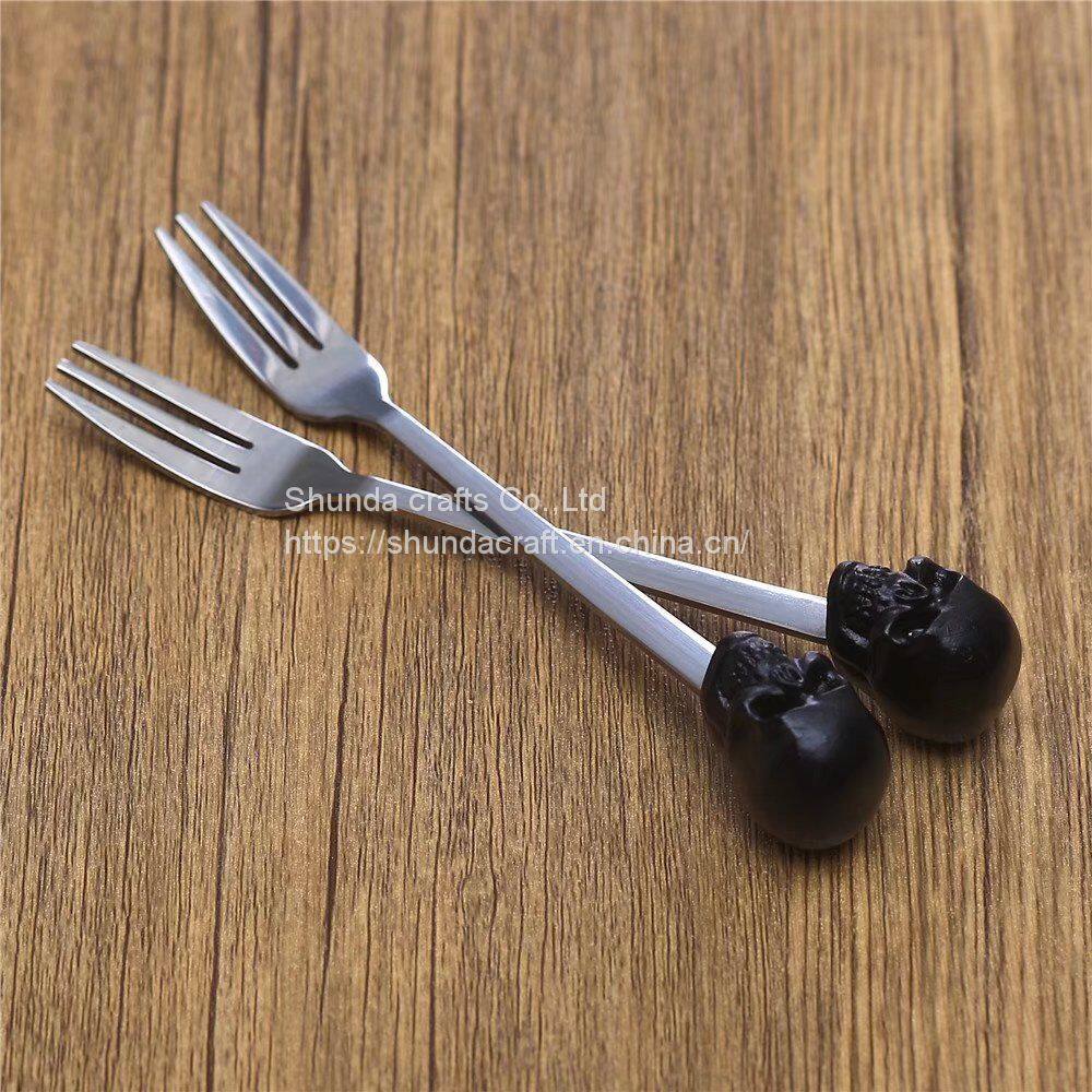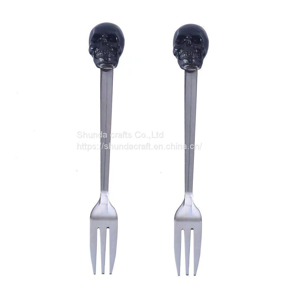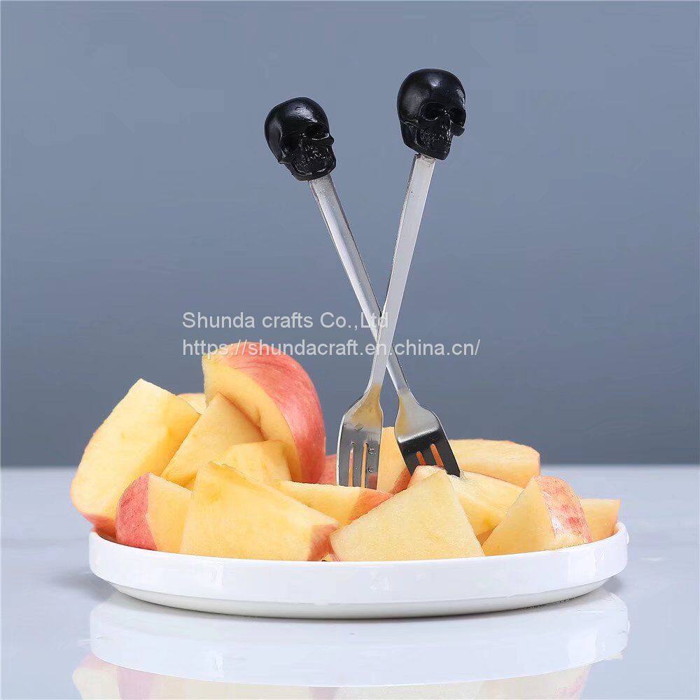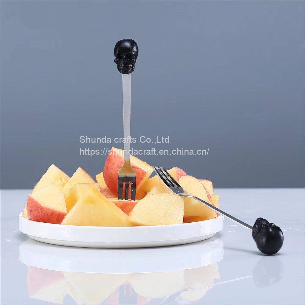 Головные черепа, нож, скелет, полочка из смолы для домашней кухни. Черный череп, набор фурк для фруктов