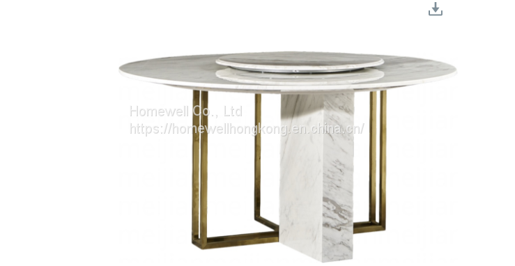 Современный обеденный стол DT1701-15 с натуральной мраморной поверхностью и стальным каркасом, средняя небольшая вращающаяся мраморная поверхность.