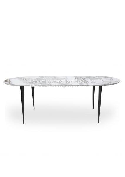 Современный обеденный стол DT1701-15 с верхней поверхностью из натурального мрамора и стальной рамой