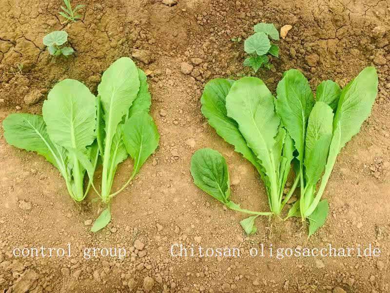 Олигосахарид хитозана(COS)используется как новый иммуномодулятор в сельском хозяйстве. Он также называется новым растительным вакцином и биопестицидом. COS способствует росту растений и активирует защитные реакции растений против грибковых, бактериальных, вирусных заболеваний и воздействия внешней среды. Он также может улучшить структуру почвы, регулируя содержание питательных веществ в ней, и повысить потенциальную урожайность. COS обладает выдающимися характеристиками высокой эффективности, экологичности, отсутствия загрязнения и отсутствия остатков. COS представляет собой объединение пестицида и удобрения и может частично заменить некоторые химические пестициды.