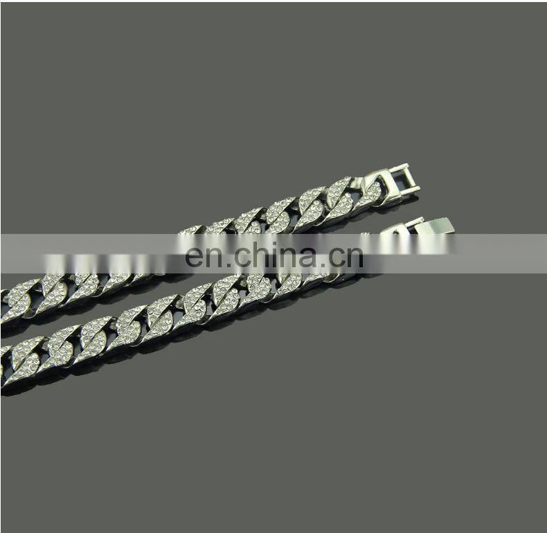 Хип-хоп украшения. 12 мм цепочка-кубанец с белым золотом, обшитая кубиковым цирконием, с клипсами для камней. Цепочка-кубанец с бриллиантами