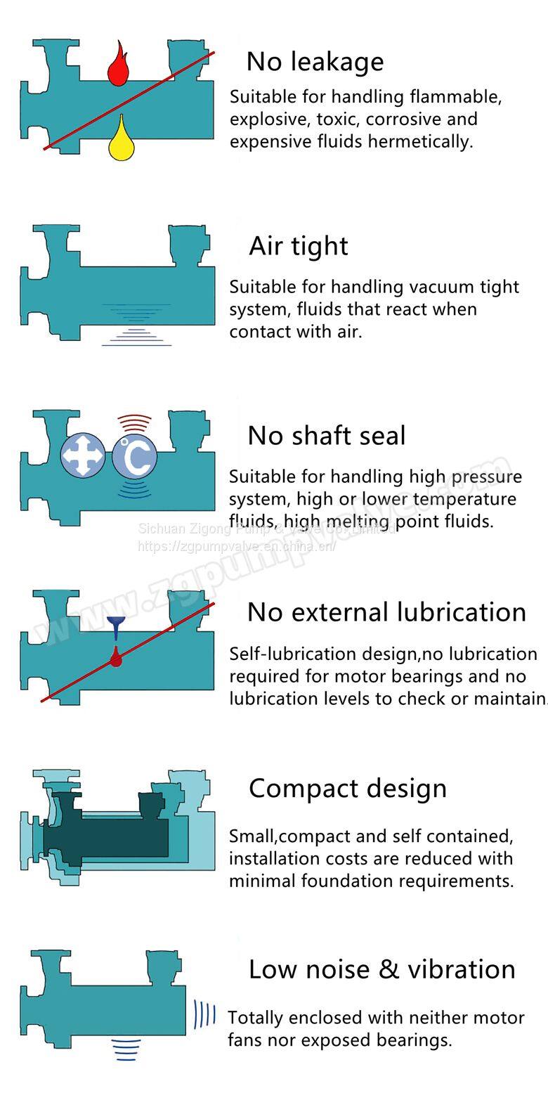 2. Полностью герметичный: на конструкции нет динамической уплотнения, только статическая уплотнение на корпусе насоса, поэтому он может быть абсолютно герметичным.