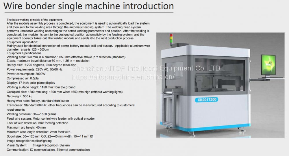 Основное применение - электрическое соединение элементов модуля силовых батарей и шин электропитания. Диапазон применимого диаметра алюминиевой проволоки составляет 125~500 мкм