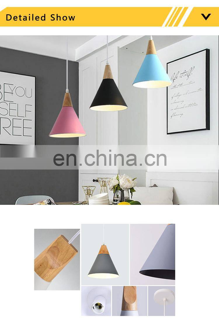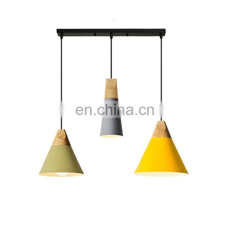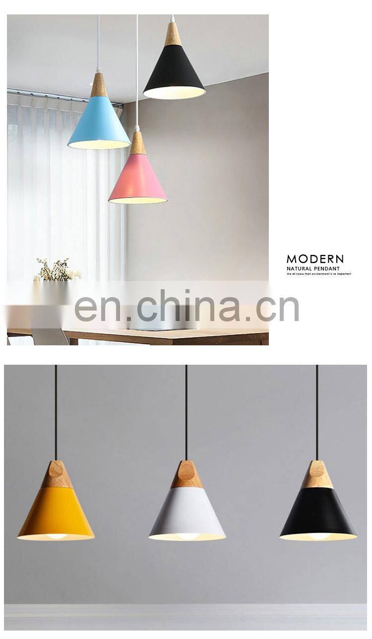 Современный декоративный подвесной светильник с деревянной основой и цветным металлическим кронштейном CE