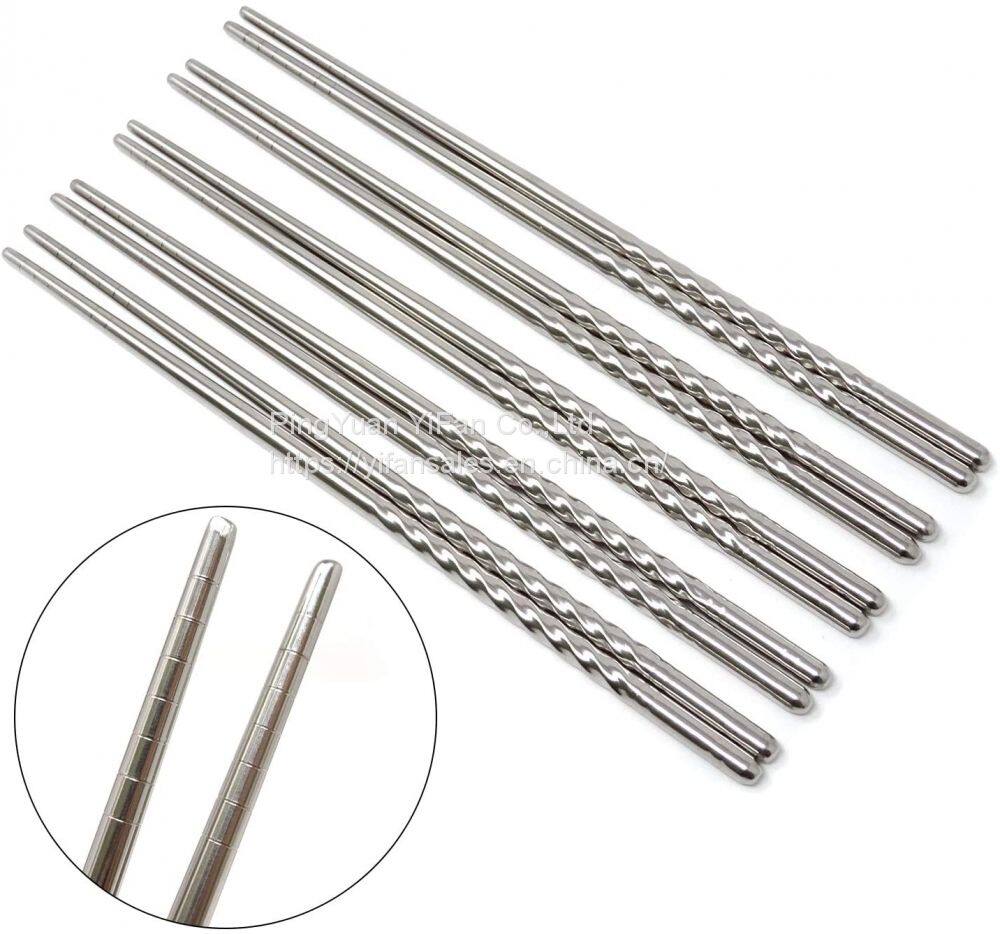 Повторно используемые металлические палочки для еды - нержавеющая сталь, спиральные палочки с нитью для антискольжения