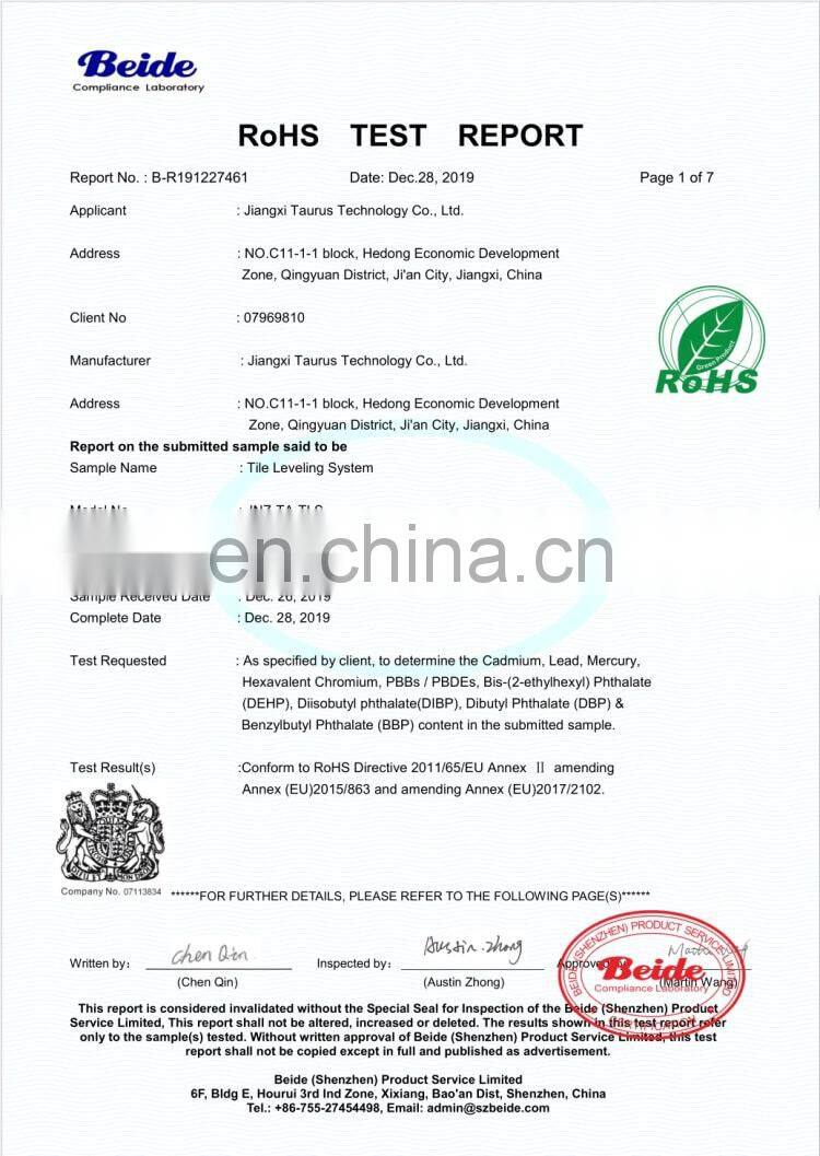 Jiangxi Taurus Technology Co.,Ltd. - это производитель, который предоставляет систему выравнивания плитки и другие аксессуары для плитки продукты. Мы сосредотачиваемся на исследовании и разработке, производстве и маркетинге системы выравнивания плитки и других систем аксессуаров для плитки. Мы стремимся предоставлять профессиональные продукты для выравнивания плитки, консультации по решениям и техническую поддержку для садовых ландшафтов, зеркальных водоемов, крытых садов, площадей, фонтанов, внутренней отделки, балконной отделки, сборных домов и других проектов.