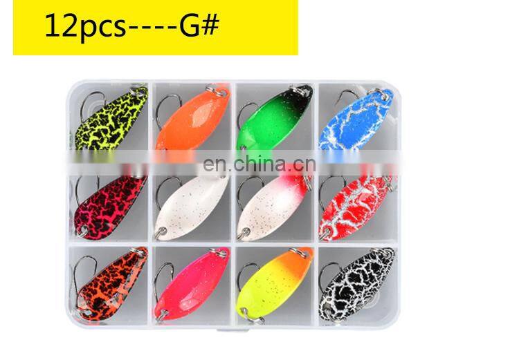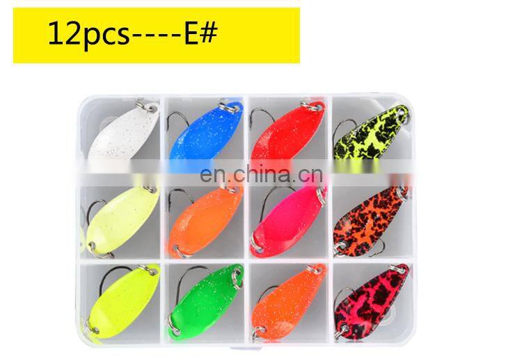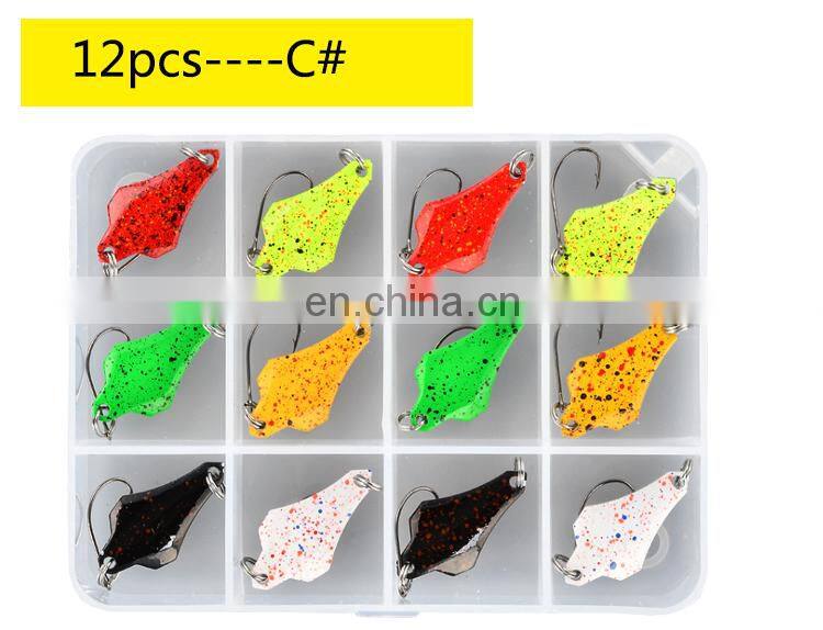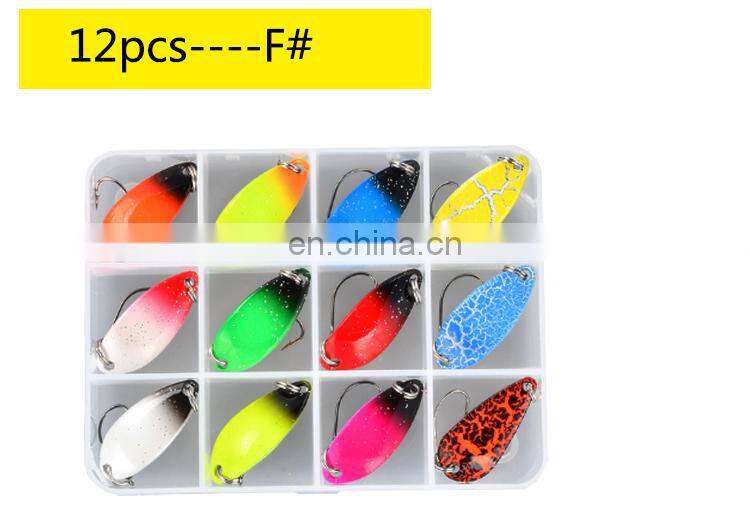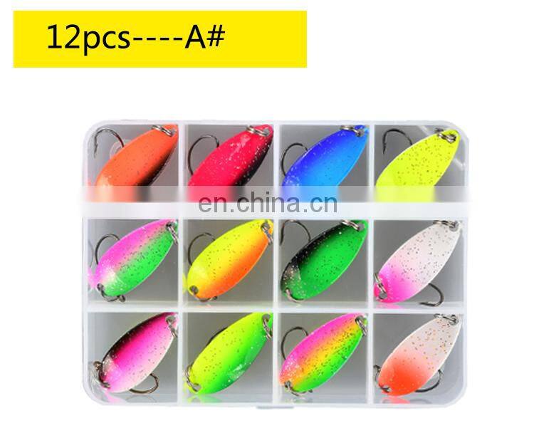 12 штук/коробка Набор металлических приманок типа лодочки для форели в смешанных цветах. Приманки для рыбалки в пресной воде, искусственные приманки для рыбалки в озере