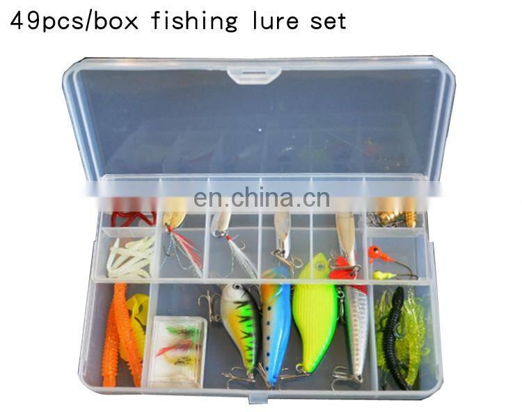 Главная > Продукты > комплект рыболовных приманок > 49 штук смешанного набора рыболовных приманок: миноны, вобблеры, кренкбеиты, жёсткие приманки, рыболовный снаряд, набор искусственных рыболовных приманок