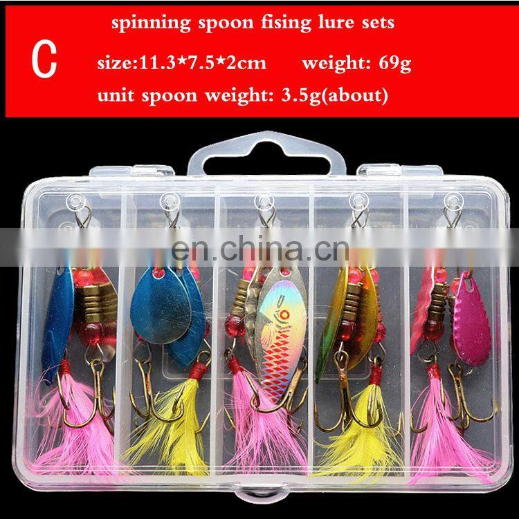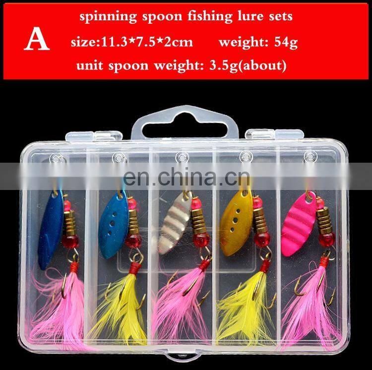 Главная > Продукты > комплект рыболовных приманок > Цены завода на наборы вращательных ложек для рыбалки, перьяные наживки, металлические вращатели и наборы приманок