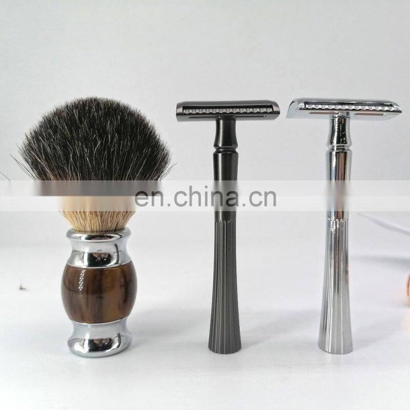 Классический комплект безопасного бритвы с косичкой из барсука, бритвой с двусторонним лезвием и металлическим рукояткой для бритья