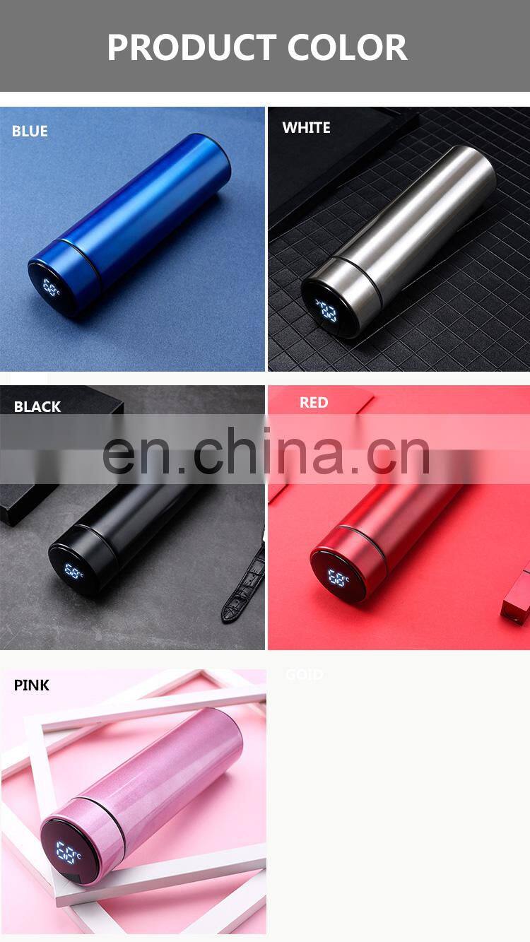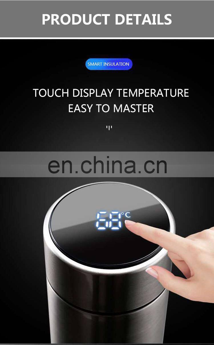 Бесплатная проба. Нержавеющая стальная термосфляга объемом 500 мл с двойными стенками, вакуумной изоляцией, индикацией температуры и светодиодом