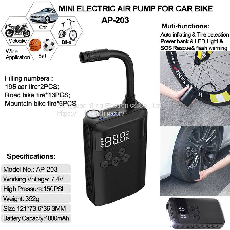 Китайский портативный компрессор для воздуха YI JING OEM, насос для велосипедных шин, легкий в использовании электрический мини-умный насос для велосипеда