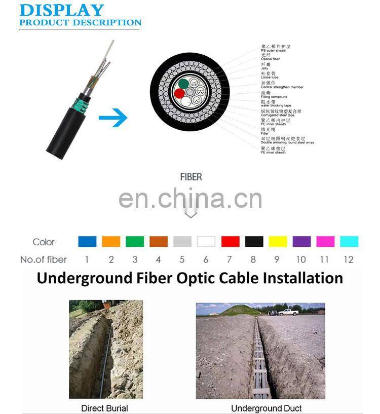 GYTA53 G652D Outdoor Duct Underground 2 4 6 12 24 48 96 core single mode fiber optic cable