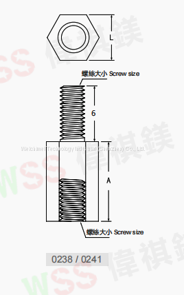 Шестигранный проставочный опорный элемент с наружной и внутренней резьбой