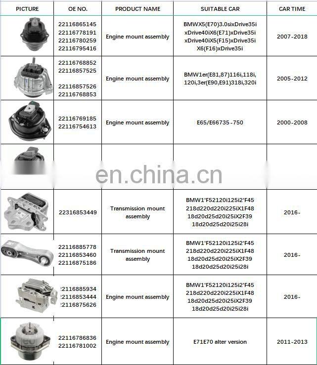 Главная > Продукты > Системы передачи > Прямые продажи от завода. Автомобильные запчасти. Прочные опоры двигателя для BMW F20 F22 F23 F30 F25 F26 22116856183