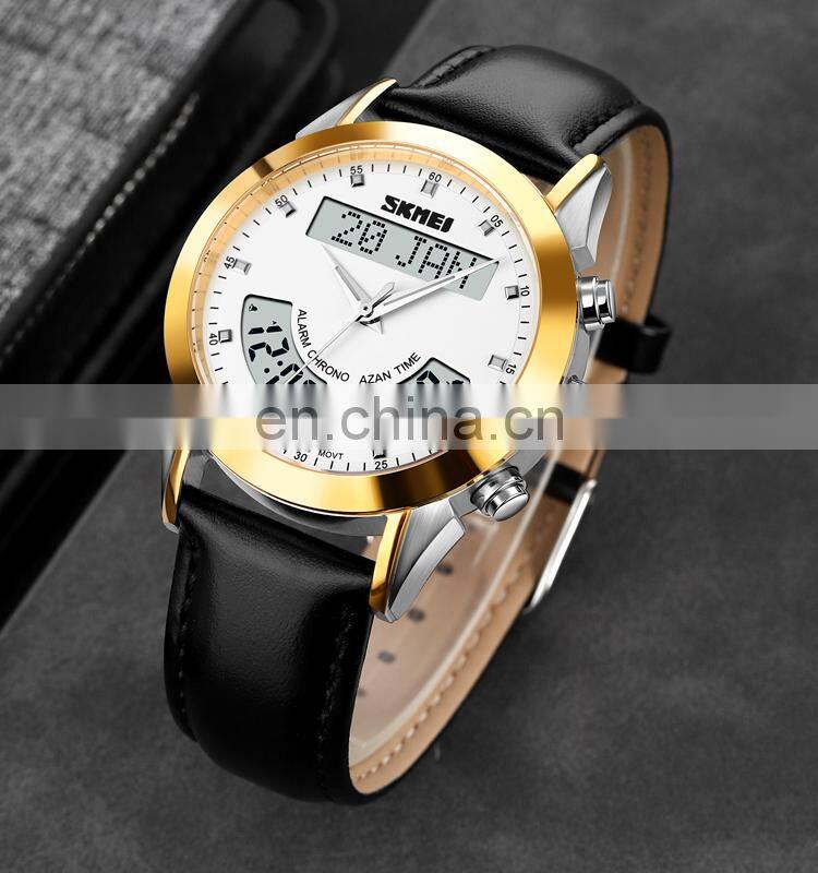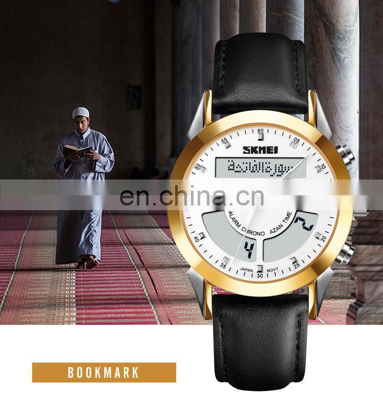 Skmei Q036 Исламские часы для мусульман с индикацией кублы, цифровые часы с кожаным ремешком для времени молитвы и азаном с сапфировым стеклом