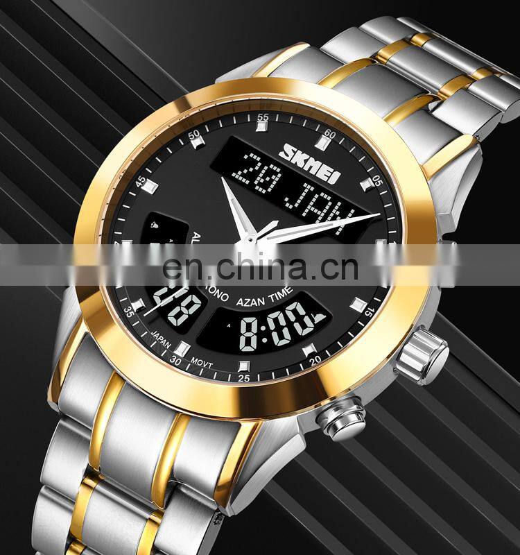 Роскошные мужские наручные часы Skmei Q036 из нержавеющей стали для мусульманских молитв с индикатором Киблы и азаном