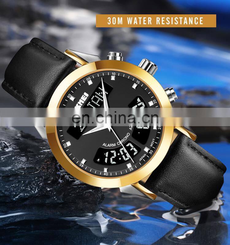 Мужские часы Skmei 9256 оптом. 3 атм. Кожаные водонепроницаемые кварцевые часы для мужчин