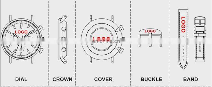 Мы можем поместить ваш логотип на циферблат, коронку, крышку, пряжку и ремешок нашего часов | ||||||||