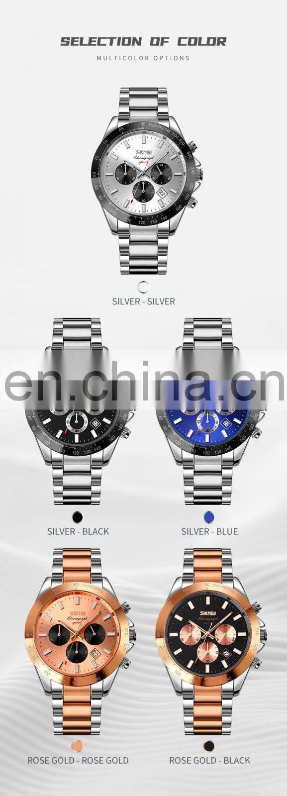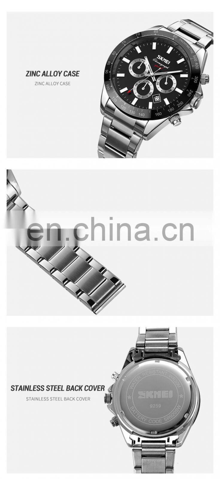 Главная > Продукты > Кварцевые часы > SKEMI 9259 Мужские модные часы из нержавеющей стали, роскошный бренд, автоматические, секундомер, кварцевые часы