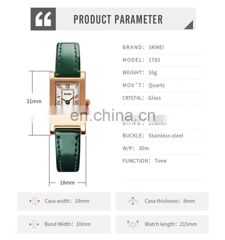 Главная > Продукты > Кварцевые часы > Skmei 1783 Женские часы с квадратной циферблатом, индивидуально изготовленные браслетные часы для женщин, женские часы с кожаным ремешком, relojes de mujer