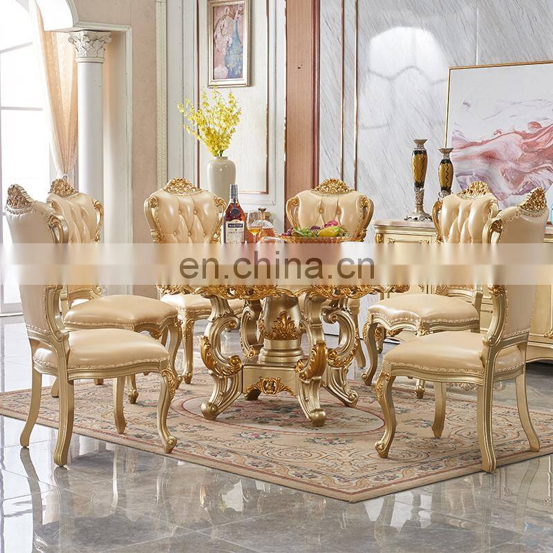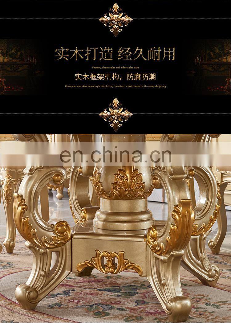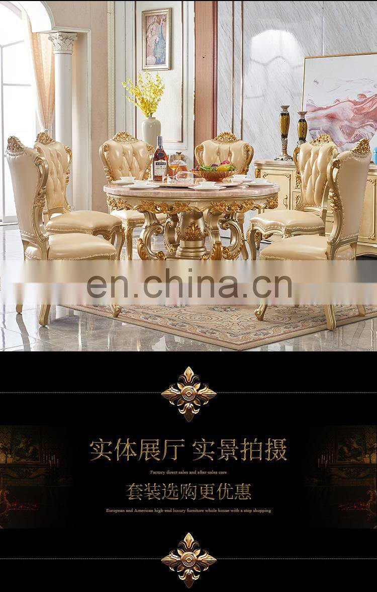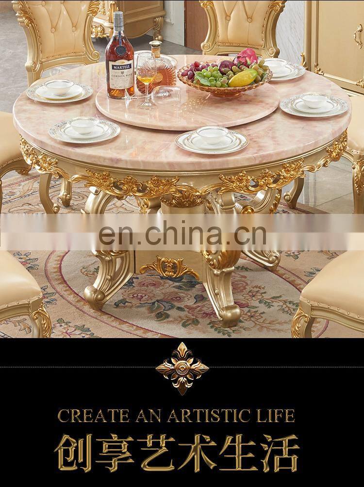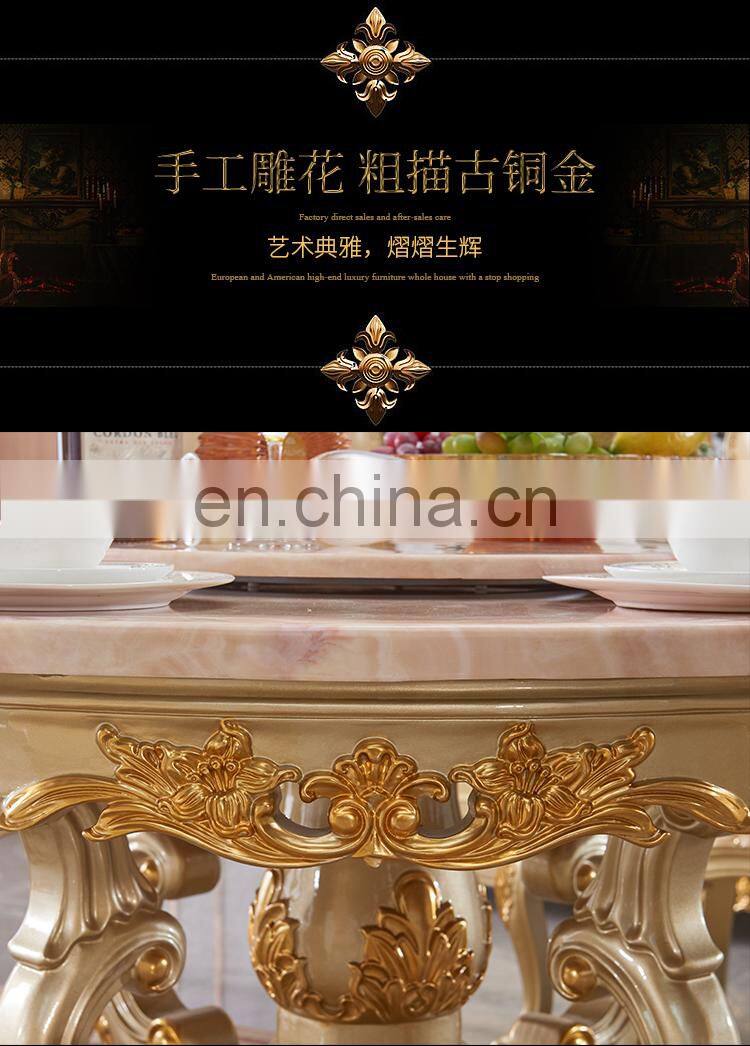 - Европейский стиль королевский золотой классический круглый обеденный столик с мраморным столешницей и набор стульев