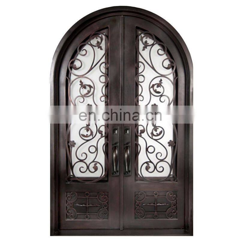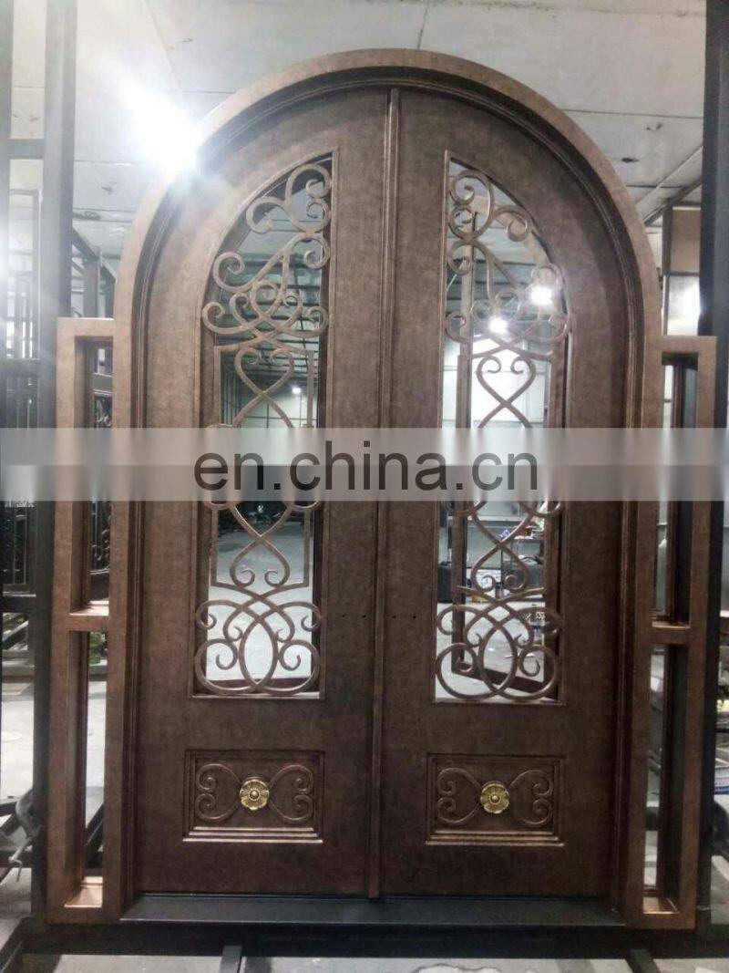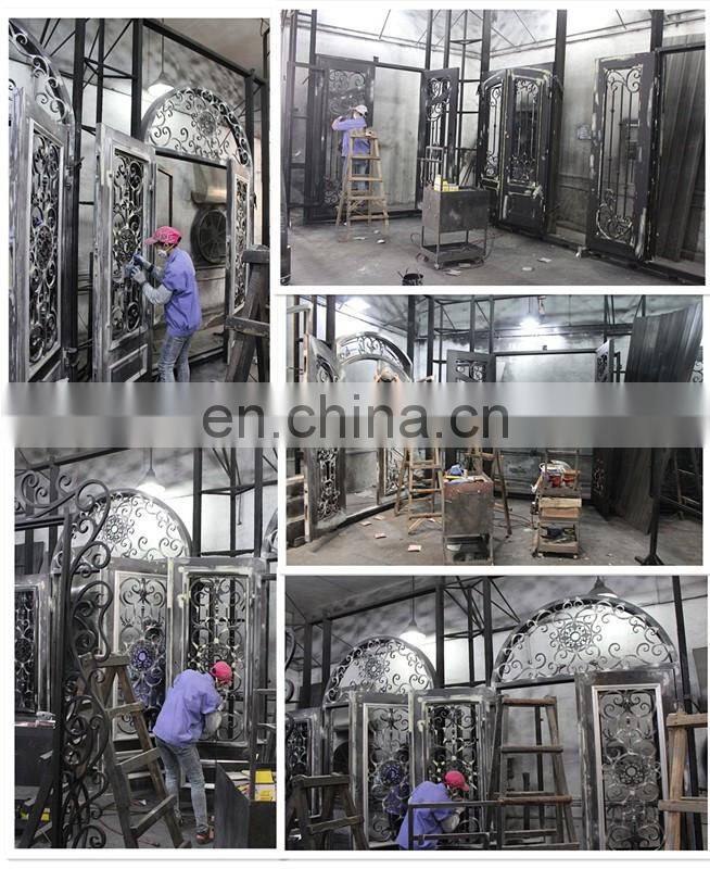 Роскошные готовые к установке панельные верандные декоративные железные входные двери для дома. Высококачественные рустикальные поворотные стеклянные кованыe железные входные двери. Цены