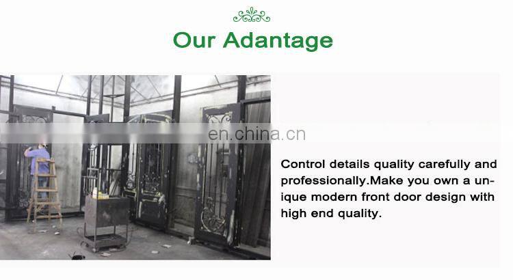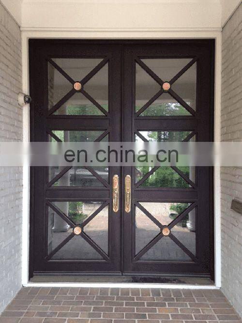 Главная > Продукты > Горячие продажи > Последние современные французские дизайны для наружных дверей. Гальванизированные перед покраской, с термообработанными двойными стеклами, с ручной ковкой, для входных дверей.