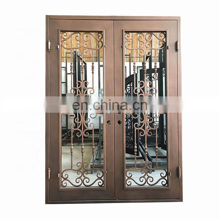 Главная > Продукты > Ворота и двери из кованого железа > Современные двери для жилых домов: основные наружные дверные конструкции из литьевого металлического каркаса с плоской панелью, двухстворчатые дверные системы безопасности из кованого железа и стекла