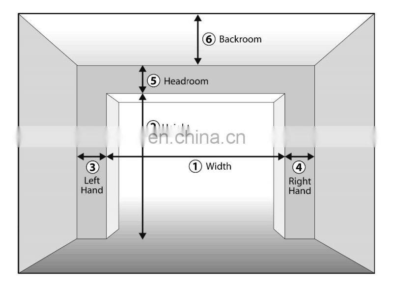 W: Ширина проема (расстояние от левого края до правого края проема)C:навес (расстояние от верхней части проема до потолка), минимум 150 мм