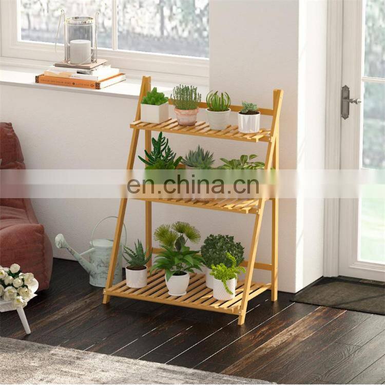 Главная > Продукты > Цветочный стеллаж > Оптовая продажа на заказ современных наружных трехярусных подставок для горшков из цельного дерева, лестничных цветочных стоек из бамбука, деревянных выставочных подставок для растений