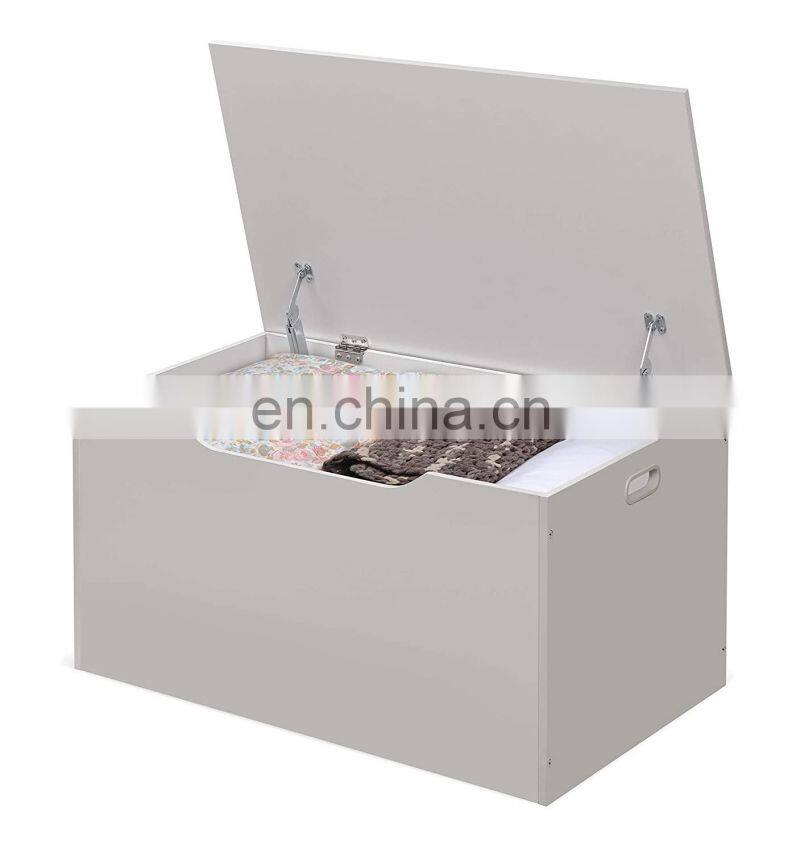 Безопасный замок без резкого закрытия защищает маленькие пальчики и предотвращает резкое закрытие крышки игрушного ящика.