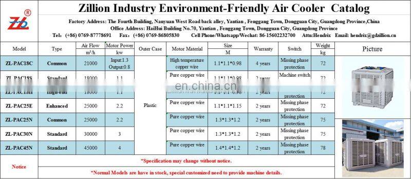 Главная > Продукты > Воздушный охладитель > Zillion промышленный экологически чистый испарительный воздушный охладитель 18000CMH