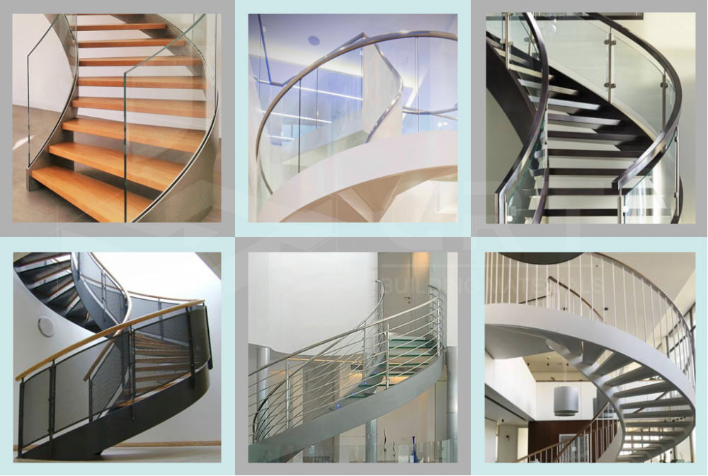 - Настроенные под заказ современные деревянные лестницы с криволинейными внутренними и внешними частями