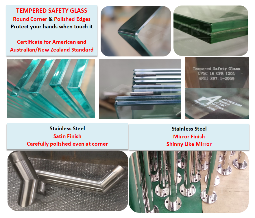 - 304 нержавеющая сталь, цельные большие лезвия стоек - стеклянные перила для лестниц и внутренние - наружные балконные ограждения