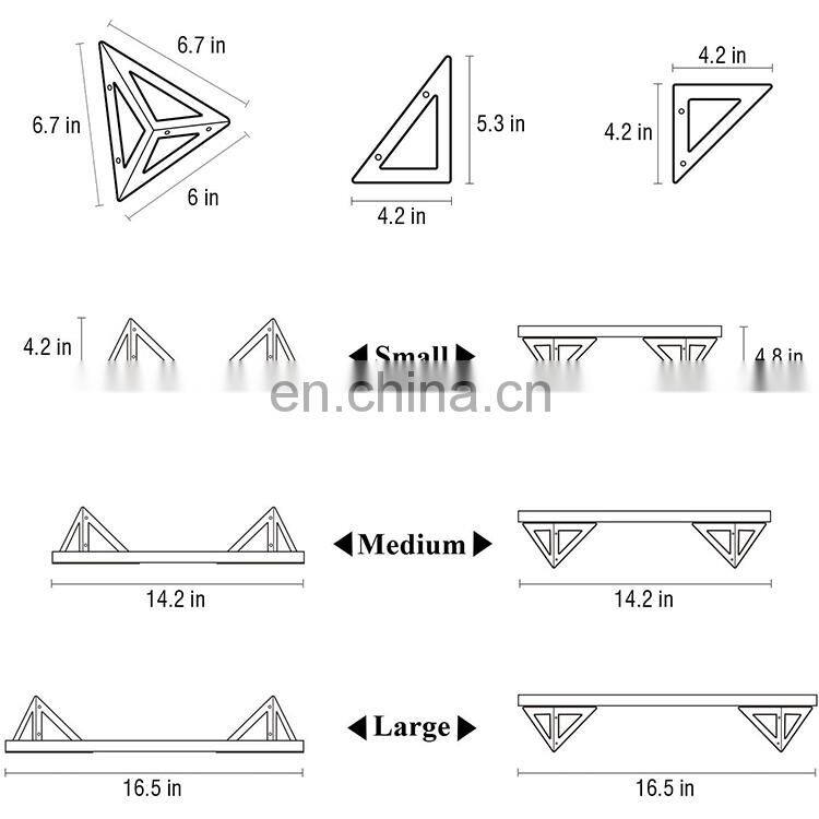 * Установка с высокой эффективностью: Установка сделана простой! Нет инструментального ящика? Не беда! Вам нужно только отвертка и несколько винтов, чтобы легко установить эти рустейшие стеллажи. Простой дизайн из прочного дерева ксенидерева и промышленных матовых металлических кронштейнов, плавающие стеллажи не только улучшают эстетику любого современного дома, но и добавляют простые и художественные дизайнерские элементы в любую комнату, независимо от стиля!Уникальные треугольные дизайны предлагают два уникальных узора, чтобы достичь