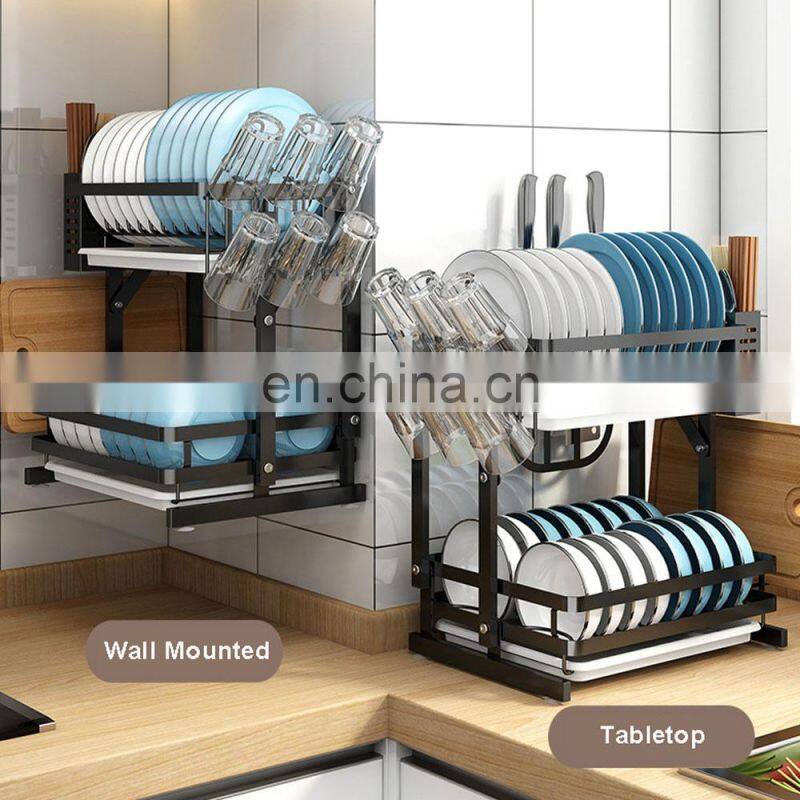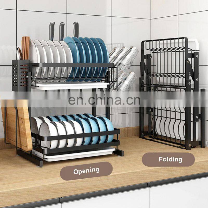 Нержавеющий стальной складной стеллаж для сушки посуды на 2 яруса, подвесной для стены, стеллаж для тарелок в кухне, стеллаж для посуды в кухне