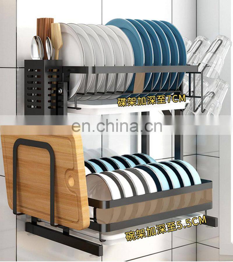 Нержавеющая стальная двухярусная настенная складная рама для сушки посуды, кухонная рама для тарелок, кухонная рама для посуды