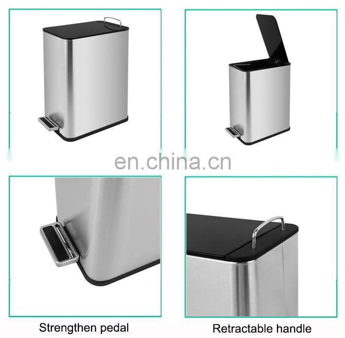 Внутренний прямоугольный мусорный бак для дома и офиса с педалью для переработки, изготовленный из нержавеющей стали