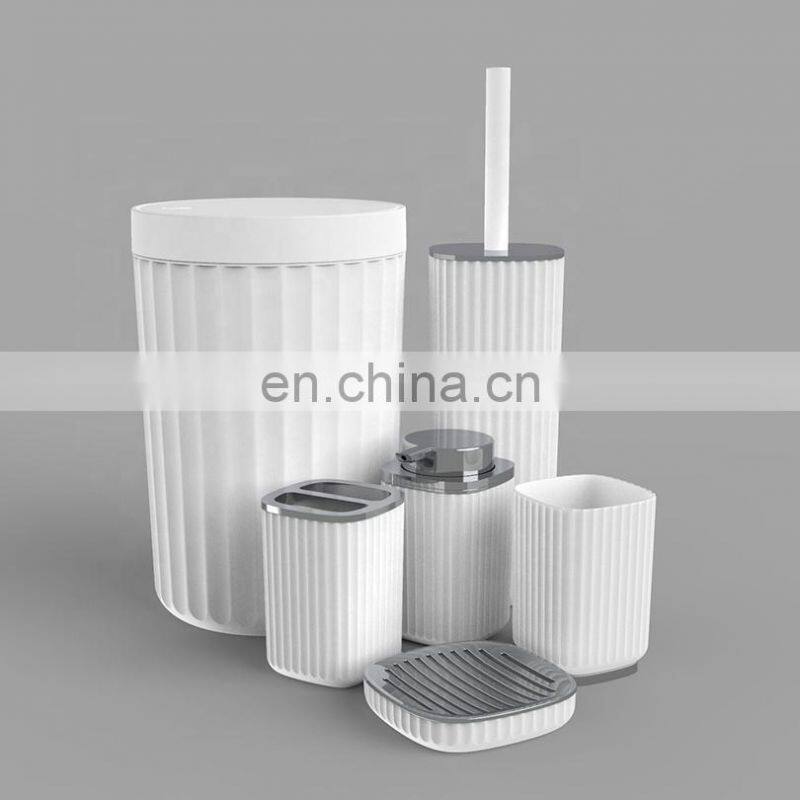 Оптовый белый набор ванных принадлежностей с мусорным ведром, туалетной щеткой и дозатором мыла