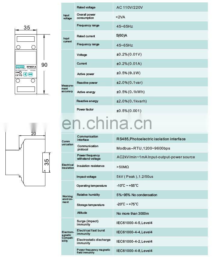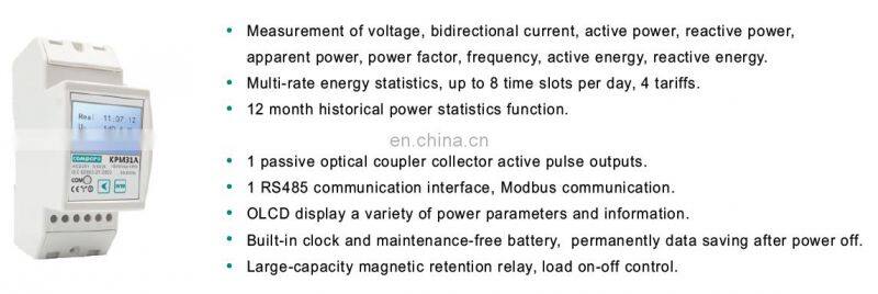 KPM31A  | IUCosφ кВткваркВт·чквар·чf;Многотарифная статистика, статистика исторических электрических энергий  | /  | RS485/WIFI  | Дин-рейка  | ||||