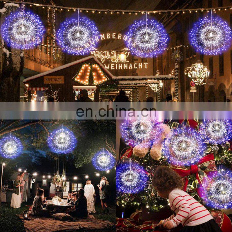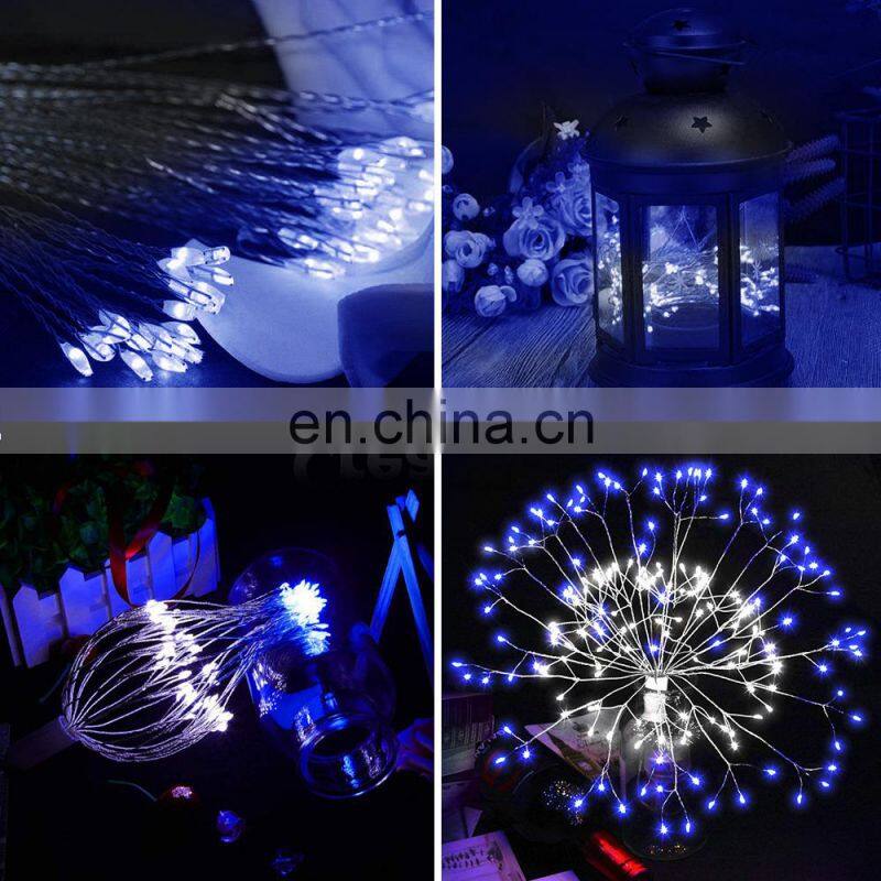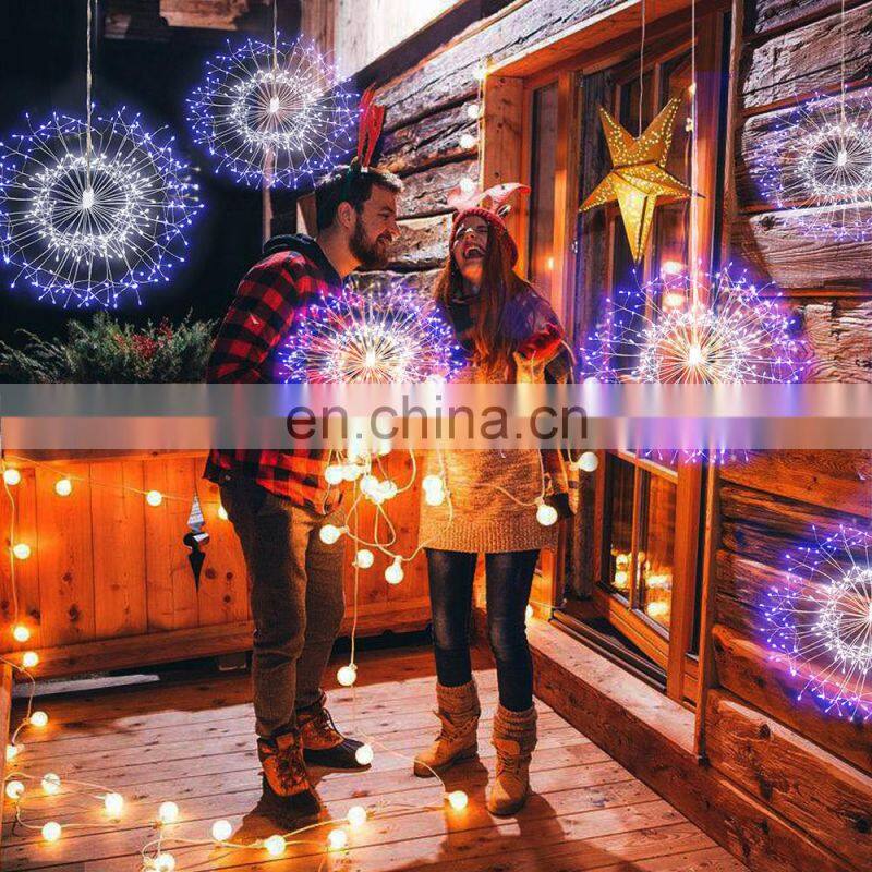 RGB Firework LED Copper Wire String Lights Подвешенные звездчатые феерические лампочки для Рождества, новогодней вечеринки, сада и наружной декорации