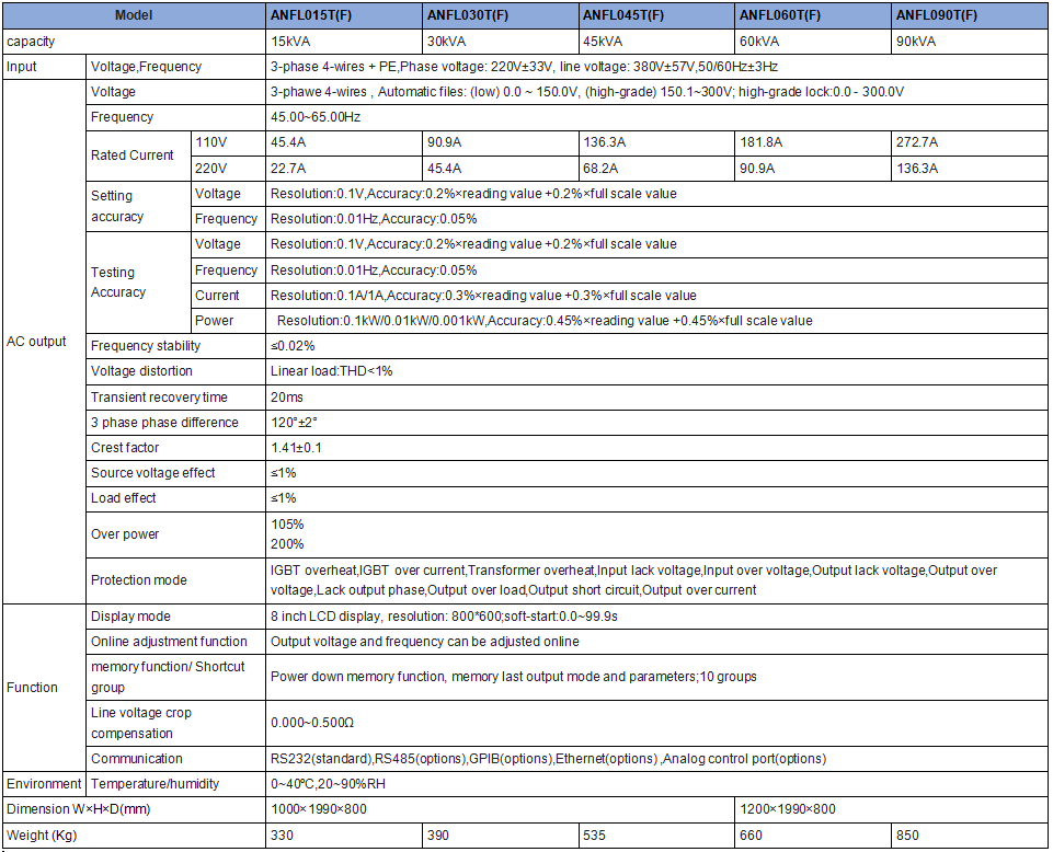 Главная > Продукты > Блок питания переменного тока > Высокопроизводительный лабораторный источник переменного тока серии Anfl мощностью от 15кВА до 90кВА