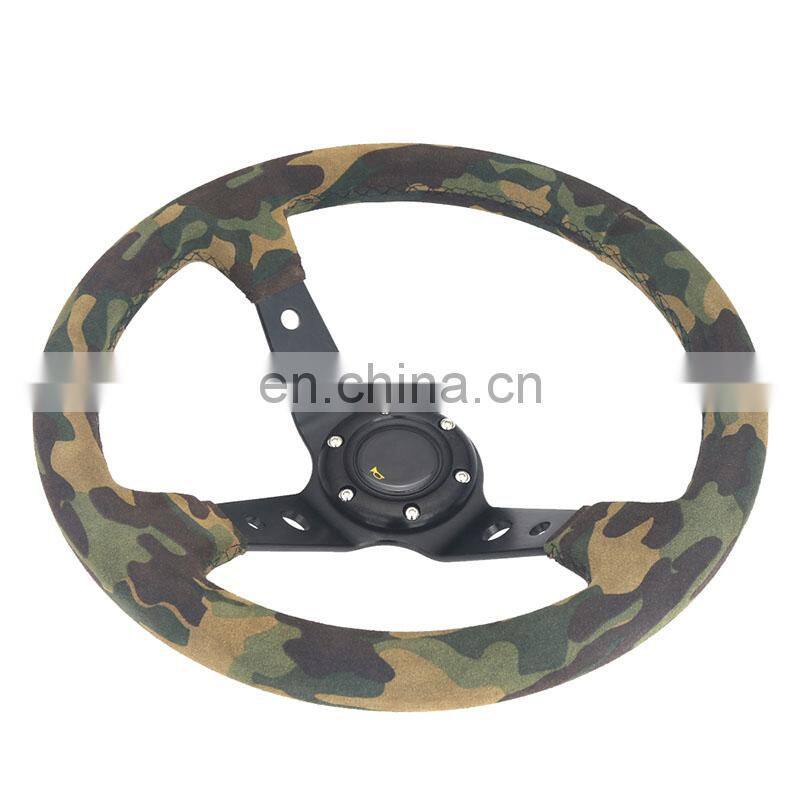 Универсальное 350-миллиметровое трехспицевое спортивное кожаное рулевое колесо из замши, матовое кожаное рулевое колесо с камуфляжем