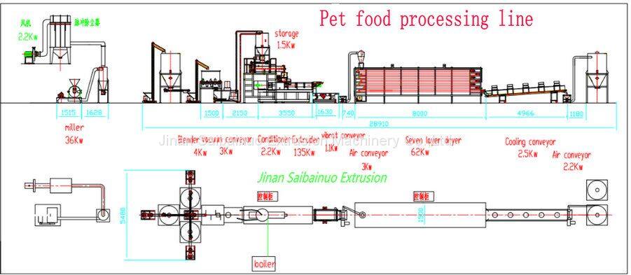 Эта линия обработки машины для производства питомцевого корма для собак и кошек обеспечивает питомцевому корму достаточное количество питательных веществ, легкоусвояемую структуру, новую форму и уникальный вкус, чтобы удовлетворить потребности современного рынка. С увеличением разнообразия домашних животных люди все больше и больше требуют различных видов питомцевого корма. Для удовлетворения различных потребностей в кормлении наша компания разработала эту линию обработки питомцевого корма. Простота в эксплуатации и точный контроль позволяют гарантировать качество корма в стабильных условиях температуры, давления, влажности и т. д.