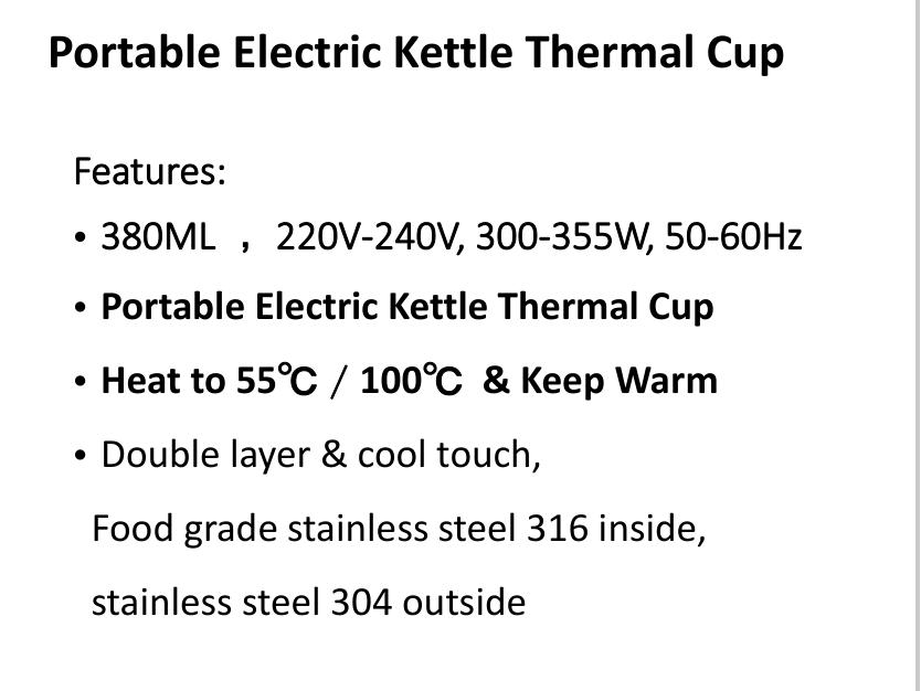 Главная > Продукты > электрический чайник > 2021 самый новый переносной электрический чайник-термос из стали 316 (SKYPE:lifuli123)