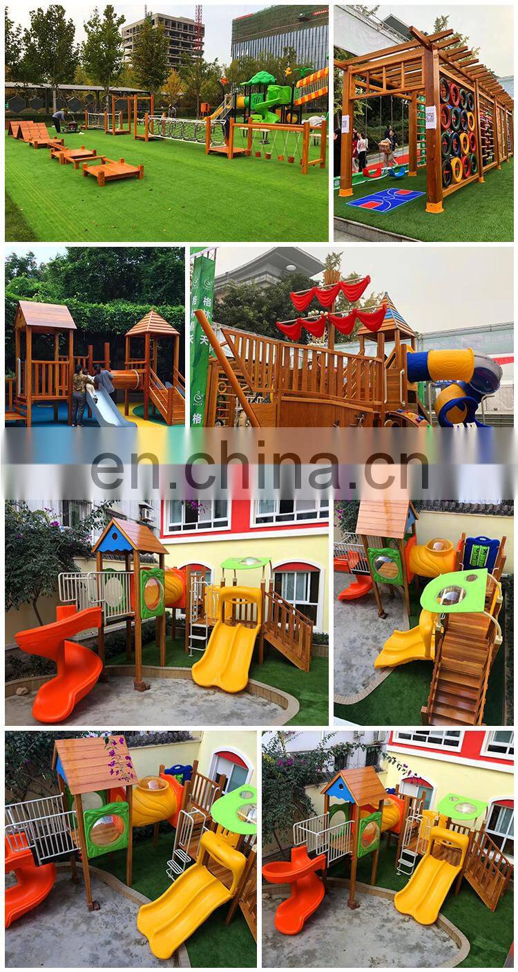 Детские коммерческие деревянные игровые площадки на открытом воздухе, оборудование для детских площадок, пластиковые горки, комплекты качелей для сада